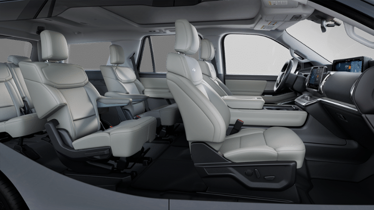 2025 Ford Expedition Platinum Silver Metallic 4WD, 10 Speakers, 2nd Row Power-Folding 40/20/40 Bench Seat, 2nd Row Power-Folding Captain's Chairs, 3.73 Axle Ratio, 3rd row seats: split-bench, 4-Wheel Disc Brakes, ABS brakes, Adjustable pedals, Air Conditioning, Alloy wheels, AM/FM radio: SiriusXM with 360L, Apple CarPlay/Android Auto, Auto High-beam Headlights, Auto-dimming door mirrors, Auto-dimming Rear-View mirror, Automatic temperature control, BlueCruise Equipped (1-Year Plan), Brake assist, Bumpers: body-color, Compass, Delay-off headlights, Driver door bin, Driver vanity mirror, Dual front impact airbags, Dual front side impact airbags, Electronic Stability Control, Emergency communication system: 911 Assist, Equipment Group 600A Standard Package, Exterior Parking Camera Rear, Four wheel independent suspension, Front anti-roll bar, Front Bucket Seats, Front Center Armrest, Front dual zone A/C, Front License Plate Bracket, Front reading lights, Fully automatic headlights, Garage door transmitter, Genuine wood dashboard insert, Genuine wood door panel insert, Heated & Ventilated Leather Front Captain's Chairs, Heated door mirrors, Heated front seats, Heated rear seats, Heated steering wheel, Illuminated entry, Leather steering wheel, Low tire pressure warning, Memory seat, Navigation System, Occupant sensing airbag, Outside temperature display, Overhead airbag, Overhead console, Panic alarm, Passenger door bin, Passenger vanity mirror, Pedal memory, Power door mirrors, Power driver seat, Power moonroof: Vista Roof, Power passenger seat, Power steering, Power windows, Radio data system, Radio: B&O Sound System by Bang & Olufsen, Rain sensing wipers, Rear air conditioning, Rear anti-roll bar, Rear reading lights, Rear window defroster, Rear window wiper, Reclining 3rd row seat, Remote keyless entry, Security system, SiriusXM w/360L, Speed control, Speed-sensing steering, Speed-Sensitive Wipers, Split folding rear seat, Spoiler, Steering wheel memory, Steering wheel mounted audio controls, Tachometer, Telescoping steering wheel, Tilt steering wheel, Traction control, Trip computer, Turn signal indicator mirrors, Variably intermittent wipers, Ventilated front seats, Voltmeter, Wheels: 20 Ebony Bright Machined Aluminum, 4WD. 4WD 10-Speed Automatic EcoBoost 3.5L V6 GTDi DOHC 24V Twin Turbocharged