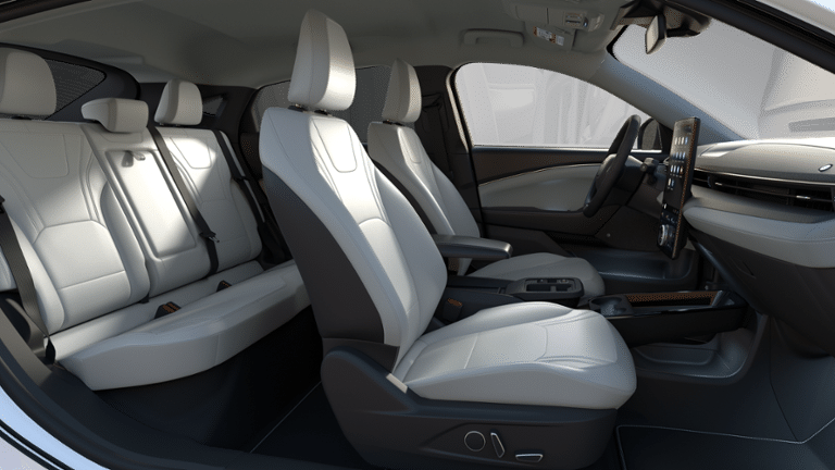 2025 Ford Mustang Mach-E Premium White Metallic 10 Speakers, 4-Wheel Disc Brakes, ABS brakes, Air Conditioning, Alloy wheels, AM/FM radio: SiriusXM with 360L, Apple CarPlay/Android Auto, Auto High-beam Headlights, Auto-dimming Rear-View mirror, Automatic temperature control, BlueCruise Equipped (1-Year Plan), Brake assist, Bumpers: body-color, Cellular Connectivity for Audio/Video Streaming, Compass, Delay-off headlights, Driver door bin, Driver vanity mirror, Dual front impact airbags, Dual front side impact airbags, Electronic Stability Control, Emergency communication system: 911 Assist, Equipment Group 300A Standard Package, Exterior Parking Camera Rear, Ford Connectivity Package (One-Time Purchase), Four wheel independent suspension, Front anti-roll bar, Front Bucket Seats, Front Center Armrest, Front dual zone A/C, Front License Plate Bracket, Front reading lights, Fully automatic headlights, Garage door transmitter, Heated door mirrors, Heated front seats, Heated steering wheel, Heated/Ventilated Perforated ActiveX Bucket Seats, Illuminated entry, Internet access capable: FordPass Connect, Knee airbag, Low tire pressure warning, Memory seat, Mobile Power Cord (120V/240V), Navigation system: Connected Navigation, Occupant sensing airbag, Outside temperature display, Overhead airbag, Overhead console, Panic alarm, Passenger door bin, Passenger vanity mirror, Power door mirrors, Power driver seat, Power Liftgate, Power passenger seat, Power steering, Power windows, Radio data system, Radio: B&O Sound System by Bang & Olufsen, Rain sensing wipers, Rear anti-roll bar, Rear seat center armrest, Rear side impact airbag, Rear window defroster, Rear window wiper, Remote keyless entry, Security system, SiriusXM w/360L, Speed control, Speed-sensing steering, Speed-Sensitive Wipers, Split folding rear seat, Spoiler, Steering wheel mounted audio controls, SYNC 4A w/Enhanced Voice Recognition, Telescoping steering wheel, Tilt steering wheel, Tire Inflator & Sealant Kit, Traction control, Trip computer, Turn signal indicator mirrors, Variably intermittent wipers, Ventilated front seats, Wheels: 19 Bright Machined Face Aluminum, Wheels: 19 Bright Machined-Face Aluminum. AWD Single-Speed Automatic Dual Electric Motor 103/94 City/Highway MPG