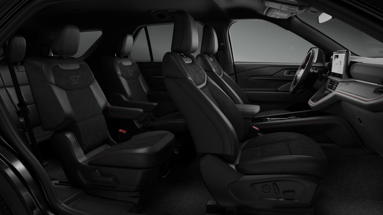 2026 Ford Explorer ST Black 4WD, 10 Speakers, 3rd row seats: bench, 4-Wheel Disc Brakes, ABS brakes, Air Conditioning, Alloy wheels, AM/FM radio: SiriusXM with 360L, Apple CarPlay/Android Auto, Auto High-beam Headlights, Auto-dimming door mirrors, Auto-dimming Rear-View mirror, Automatic temperature control, BlueCruise Equipped (1-Year + 90-Day Plan), Brake assist, Bumpers: body-color, Compass, Delay-off headlights, Driver door bin, Driver vanity mirror, Dual front impact airbags, Dual front side impact airbags, Electronic Stability Control, Emergency communication system: 911 Assist, Equipment Group 400A Standard Package, Exterior Parking Camera Rear, First Aid Kit, Ford Connectivity Package (one-Time Purchase - 7 Years), Four wheel independent suspension, Front anti-roll bar, Front Bucket Seats, Front Center Armrest, Front dual zone A/C, Front fog lights, Front License Plate Bracket, Front reading lights, Fully automatic headlights, Garage door transmitter, Heated door mirrors, Heated front seats, Heated rear seats, Heated steering wheel, Heated/Ventilated Miko Suede Captain's Chairs, Illuminated entry, Knee airbag, Leather steering wheel, Low tire pressure warning, Memory seat, Multicontour Seats with Front Active Motion, Navigation System, Occupant sensing airbag, Outside temperature display, Overhead airbag, Overhead console, Panic alarm, Panoramic Fixed Glass Roof with Power Shade, Passenger door bin, Passenger vanity mirror, Power door mirrors, Power driver seat, Power Liftgate, Power passenger seat, Power steering, Power windows, Radio: B&O Sound System by Bang & Olufsen, Radio: B&O Sound System by Bang and Olufsen, Rain sensing wipers, Rear air conditioning, Rear anti-roll bar, Rear reading lights, Rear window defroster, Rear window wiper, Remote Control Front Windows, Remote keyless entry, SecuriCode Keyless Entry Keypad, Security system, SiriusXM with 360L (3-Year Plan), Speed control, Speed-sensing steering, Speed-Sensitive Wipers, Split folding rear seat, Spoiler, Sport steering wheel, Steering wheel mounted audio controls, Sun and Sound Package, Tachometer, Telescoping steering wheel, Tilt steering wheel, Traction control, Trip computer, Turn signal indicator mirrors, Variably intermittent wipers, Ventilated front seats, Wheels: 21 Magnetite-Painted Aluminum, 4WD. 4WD 10-Speed Automatic 3.0L EcoBoost V6