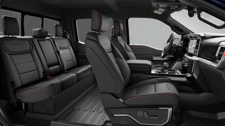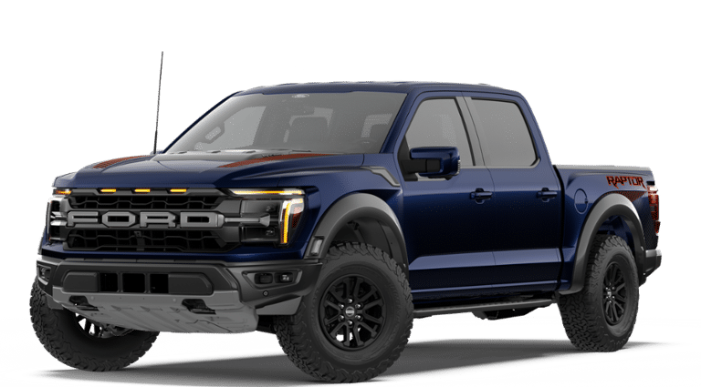 2026 Ford F-150 Raptor Blue 4WD, 14 Speakers, 17 Cast Aluminum Wheels, 4-Wheel Disc Brakes, ABS brakes, Adjustable pedals, Air Conditioning, Alloy wheels, AM/FM radio: SiriusXM with 360L, Auto High-beam Headlights, Auto tilt-away steering wheel, Auto-dimming door mirrors, Auto-dimming Rear-View mirror, Automatic temperature control, Brake assist, Bumpers: body-color, Compass, Delay-off headlights, Driver door bin, Driver vanity mirror, Dual front impact airbags, Dual front side impact airbags, Electronic Locking with 4.10 Axle Ratio, Electronic Stability Control, Emergency communication system: SYNC 4 911 Assist, Equipment Group 801A Standard, Ford Connectivity Package (1-Year Included), Front anti-roll bar, Front Bucket Seats, Front Center Armrest, Front dual zone A/C, Front fog lights, Front License Plate Bracket, Front reading lights, Front wheel independent suspension, Fully automatic headlights, Garage door transmitter, Heated door mirrors, Heated front seats, Heated rear seats, Heated steering wheel, Illuminated entry, Internet access capable: 5G Modem - Ford Connectivity Package, Lane Departure Warning System, Leather steering wheel, Leather Trimmed Seats, Low tire pressure warning, Memory seat, Navigation system: Connected Navigation, Occupant sensing airbag, Outside temperature display, Overhead airbag, Overhead console, Panic alarm, Passenger door bin, Passenger vanity mirror, Pedal memory, Power door mirrors, Power driver seat, Power passenger seat, Power steering, Power windows, Radio data system, Radio: B&O Unleashed Sound System by Bang & Olufsen, Rain sensing wipers, Rear reading lights, Rear step bumper, Rear window defroster, Remote keyless entry, Security system, Speed control, Speed-sensing steering, Split folding rear seat, Steering wheel memory, Steering wheel mounted audio controls, SYNC 4 with Enhanced Voice Recognition, Tachometer, Telescoping steering wheel, Tilt steering wheel, Traction control, Trip computer, Turn signal indicator mirrors, Variably intermittent wipers, Ventilated front seats, 4WD. 4WD 10-Speed Automatic 3.5L V6 EcoBoost