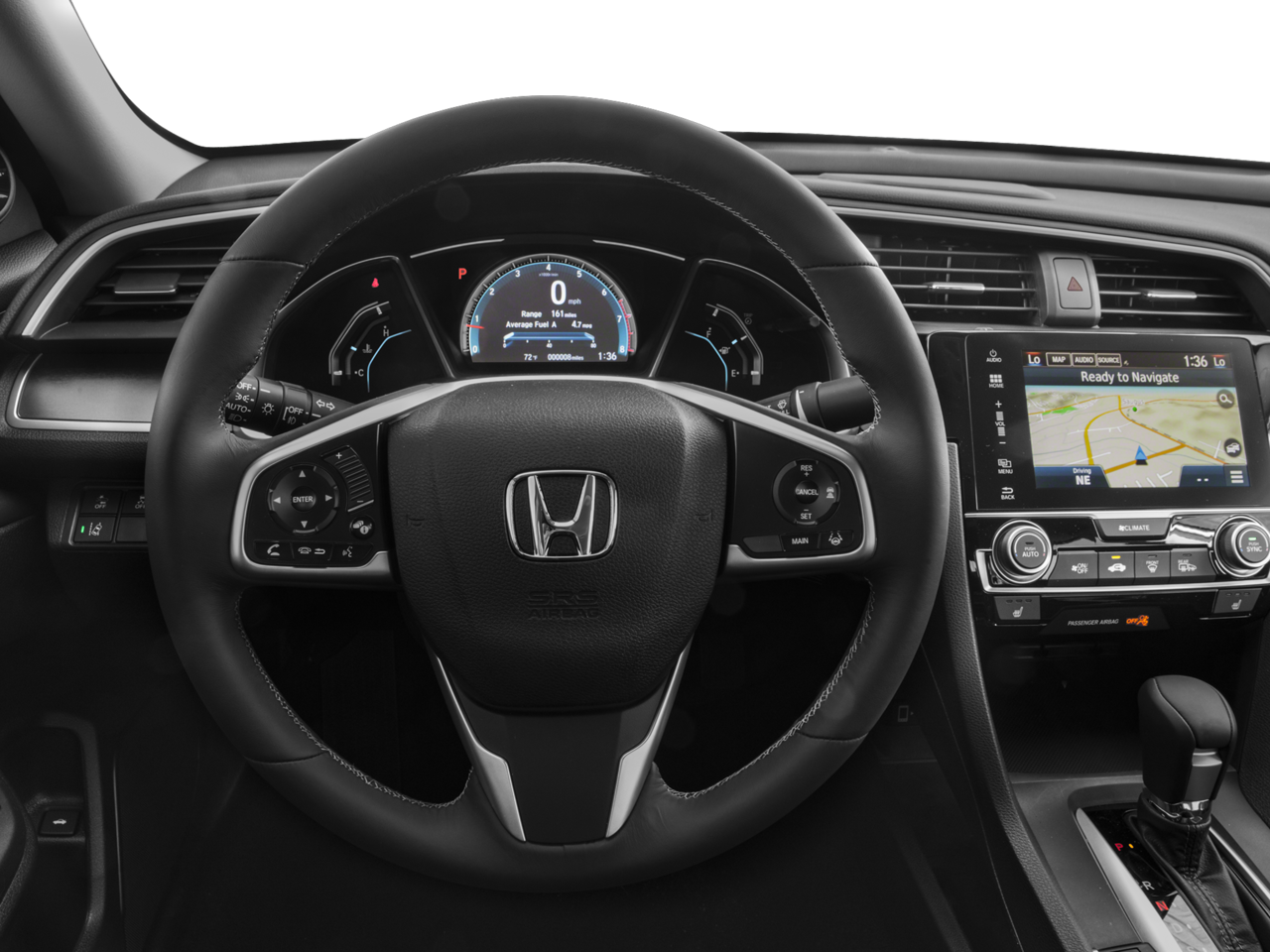 - Radio: 450-Watt AM/FM/HD/SiriusXM Audio System -inc: 9 speakers, subwoofer, 7-inch display w/high-resolution WVGA (800x480) electrostatic touch-screen and customizable feature settings, Honda Satellite-Linked Navigation System w/voice recognition, Honda HD digital traffic, turn-by-turn directions, compass and Song By Voice (SBV), Bluetooth® HandsFreeLink, Bluetooth® streaming audio, radio data system (RDS), speed-sensitive volume control (SVC), 2 USB audio interface charging ports including one 1.0-amp port in front and one 1.5-amp port in center console, HondaLink, Apple Carplay, Android Auto, Pandora compatibility, SMS text message function, illuminated steering wheel-mounted audio controls and navigation controls and body-colored fin-type roof-mounted antenna