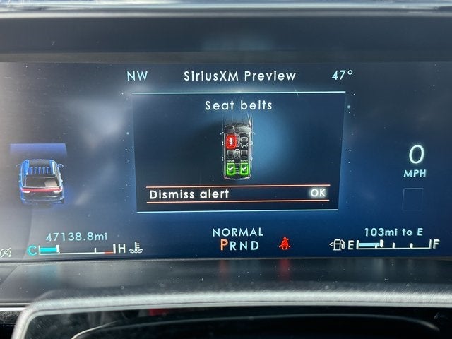 2022 Lincoln Navigator L Black Metallic Reserve 14 Speakers, 3.73 Axle Ratio, 3rd row seats: split-bench, 4-Wheel Disc Brakes, ABS brakes, Active Park Assist 2.0 Prep Kit, Adaptive suspension, Adjustable pedals, Air Conditioning, All-Weather Floor Liners w/Carpet Floor Mats, Alloy wheels, AM/FM radio: SiriusXM with 360L, Audio memory, Auto High-beam Headlights, Auto Start-Stop Technology, Auto tilt-away steering wheel, Auto-dimming door mirrors, Auto-dimming Rear-View mirror, Auto-leveling suspension, Automatic temperature control, Bodyside moldings, Brake assist, Bumpers: body-color, Compass, Delay-off headlights, Driver door bin, Driver vanity mirror, Driver's Seat Mounted Armrest, Dual front impact airbags, Dual front side impact airbags, Electronic Stability Control, Emergency communication system: 911 Assist, Equipment Group 200A Reserve, Exterior Parking Camera Rear, Four wheel independent suspension, Front anti-roll bar, Front Bucket Seats, Front dual zone A/C, Front fog lights, Front License Plate Bracket, Front reading lights, Fully automatic headlights, Garage door transmitter, Genuine wood dashboard insert, Genuine wood door panel insert, Hands-Free Liftgate Delete, Head restraints memory, Heads-Up Display, Heated door mirrors, Heated front seats, Heated rear seats, Heated steering wheel, HVAC memory, Illuminated entry, Leather steering wheel, Low tire pressure warning, Memory seat, Navigation system: Connected Navigation (3-year trial), Occupant sensing airbag, Outside temperature display, Overhead airbag, Overhead console, Panic alarm, Passenger door bin, Passenger seat mounted armrest, Passenger vanity mirror, Pedal memory, Power adjustable rear head restraints, Power door mirrors, Power driver seat, Power Liftgate, Power moonroof: Panoramic Vista Roof, Power passenger seat, Power steering, Power windows, Prem Lthr Auto Htd/Ventiltd Perfect Position Seats, Radio data system, Radio: Revel AM/FM/HD/MP3 Audio System, Rain sensing wipers, Rear air conditioning, Rear anti-roll bar, Rear audio controls, Rear reading lights, Rear window defroster, Rear window wiper, Reclining 3rd row seat, Remote keyless entry, Security system, SiriusXM w/360L, Speed control, Speed-sensing steering, Speed-Sensitive Wipers, Split folding rear seat, Spoiler, Steering wheel memory, Steering wheel mounted audio controls, SYNC 4 Communications & Entertainment System, Tachometer, Telescoping steering wheel, Tilt steering wheel, Traction control, Trip computer, Turn signal indicator mirrors, Variably intermittent wipers, Ventilated front seats, Ventilated rear seats, Voice-Activated Touchscreen Navigation System, Wheels: 22 Bright Machined Aluminum. CARFAX One-Owner. 4WD 10-Speed Automatic V6