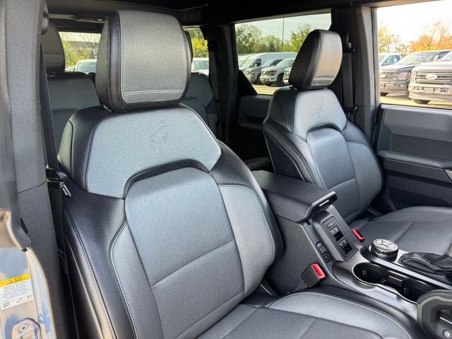 2023 Ford Bronco Azure Gray Metallic Tri-Coat Everglades 4-Wheel Disc Brakes, 7 Speakers, ABS brakes, Air Conditioning, AM/FM radio: SiriusXM with 360L, AM/FM Stereo, Auto High-beam Headlights, Brake assist, Compass, Delay-off headlights, Driver door bin, Driver vanity mirror, Dual front impact airbags, Dual front side impact airbags, Electronic Stability Control, Emergency communication system: 911 Assist, Exterior Parking Camera Rear, Front anti-roll bar, Front Bucket Seats, Front Center Armrest, Front reading lights, Front wheel independent suspension, Fully automatic headlights, Heated door mirrors, Illuminated entry, Integrated roll-over protection, Keyless Entry Keypad, Low tire pressure warning, Occupant sensing airbag, Outside temperature display, Overhead airbag, Overhead console, Panic alarm, Passenger door bin, Passenger vanity mirror, Power door mirrors, Power steering, Power windows, Radio data system, Radio: 6 Speakers w/Subwoofer Delete, Remote keyless entry, Security system, SiriusXM Radio w/360L, Speed control, Split folding rear seat, Steering wheel mounted audio controls, SYNC 4, Tachometer, Telescoping steering wheel, Tilt steering wheel, Traction control, Trip computer, Variably intermittent wipers. 4WD 10-Speed Automatic 2.3L EcoBoost I-4
