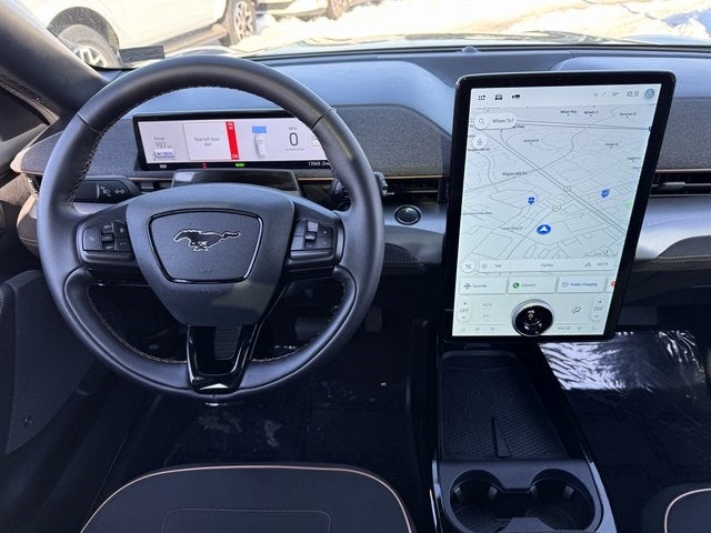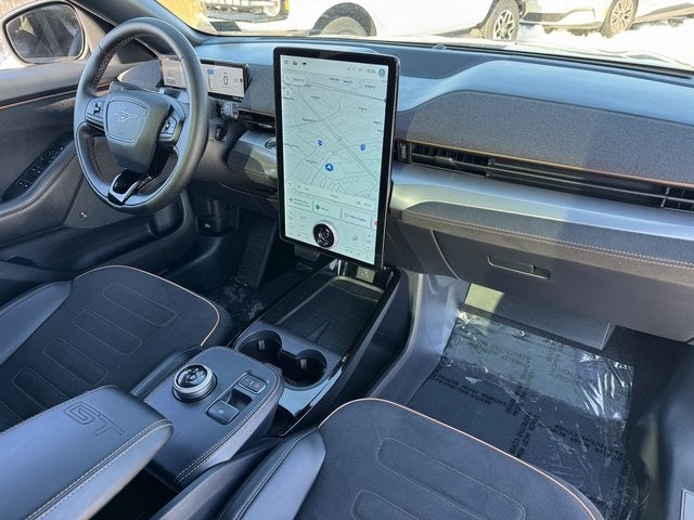 2023 Ford Mustang Mach-E Shadow Black GT 10 Speakers, 1st & 2nd Row Floor Liners w/o Carpet Mats, 4-Wheel Disc Brakes, ABS brakes, Air Conditioning, Alloy wheels, AM/FM radio: SiriusXM with 360L, AM/FM Stereo, Apple CarPlay/Android Auto, Auto High-beam Headlights, Auto-dimming Rear-View mirror, Automatic temperature control, Axle Ratio: 9.05, Brake assist, Bumpers: body-color, Cargo Floor Liner, Compass, Delay-off headlights, Driver door bin, Driver vanity mirror, Dual front impact airbags, Dual front side impact airbags, Electronic Stability Control, Emergency communication system: 911 Assist, Equipment Group 400A, Exterior Parking Camera Rear, Four wheel independent suspension, Front anti-roll bar, Front Bucket Seats, Front Center Armrest, Front dual zone A/C, Front reading lights, Fully automatic headlights, Garage door transmitter, Heated ActiveX Sport Seats, Heated door mirrors, Heated front seats, Heated steering wheel, Illuminated entry, Interior Protection Package (Pre-Installed), Knee airbag, Low tire pressure warning, Memory seat, Navigation system: Connected Navigation, Occupant sensing airbag, Outside temperature display, Overhead airbag, Overhead console, Panic alarm, Passenger door bin, Passenger vanity mirror, Power door mirrors, Power driver seat, Power Liftgate, Power passenger seat, Power steering, Power windows, Radio data system, Rain sensing wipers, Rear anti-roll bar, Rear seat center armrest, Rear side impact airbag, Rear window defroster, Rear window wiper, Remote keyless entry, Security system, SiriusXM Radio w/360L, Speed control, Speed-sensing steering, Speed-Sensitive Wipers, Split folding rear seat, Spoiler, Steering wheel mounted audio controls, SYNC 4A w/Enhanced Voice Recognition, Telescoping steering wheel, Tilt steering wheel, Traction control, Trip computer, Turn signal indicator mirrors, Variably intermittent wipers, Wheels: 20 Machined-Face Aluminum. CARFAX One-Owner. AWD Single-Speed Automatic Dual Electric Motor