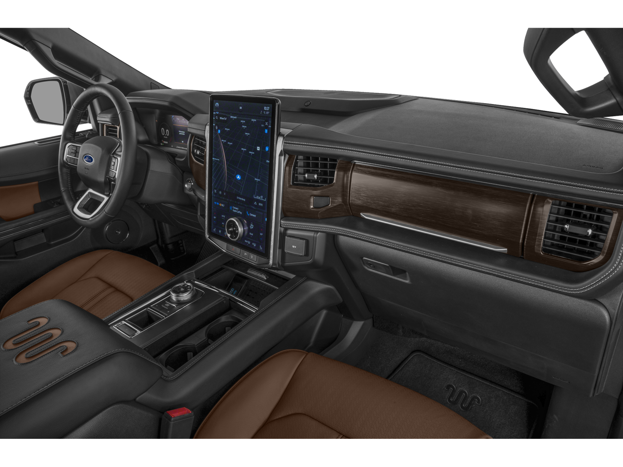 2024 Ford Expedition Agate Black Metallic King Ranch 4WD, 22 Speakers, 26mm Engine Radiator, 360-Degree Camera w/Trailer Reverse Guidance, 3rd row seats: split-bench, 4-Wheel Disc Brakes, ABS brakes, Adjustable pedals, Air Conditioning, Alloy wheels, AM/FM radio: SiriusXM with 360L, Auto High-beam Headlights, Auto-dimming door mirrors, Auto-dimming Rear-View mirror, Automatic temperature control, Brake assist, Bumpers: body-color, Compass, Continuous Controlled Damping (CCD), Delay-off headlights, Driver door bin, Driver vanity mirror, Dual front impact airbags, Dual front side impact airbags, Electronic Stability Control, Emergency communication system: SYNC 4 911 Assist, Equipment Group 400A Standard Package, Exterior Parking Camera Rear, Four wheel independent suspension, Front anti-roll bar, Front Bucket Seats, Front Center Armrest, Front dual zone A/C, Front fog lights, Front reading lights, Front Tow Hooks, Fully automatic headlights, Garage door transmitter, Genuine wood console insert, Genuine wood dashboard insert, Genuine wood door panel insert, Heated door mirrors, Heated front seats, Heated rear seats, Heated steering wheel, Heated/Vent Prem Del Rio Lthr Fr Captain's Chairs, Heavy-Duty Trailer Tow Package, Illuminated entry, Integrated Trailer Brake Controller, Leather steering wheel, Low tire pressure warning, Memory seat, Navigation system: Connected Navigation, Occupant sensing airbag, Outside temperature display, Overhead airbag, Overhead console, Panic alarm, Passenger door bin, Passenger vanity mirror, Pedal memory, Power door mirrors, Power driver seat, Power Liftgate, Power moonroof, Power passenger seat, Power steering, Power windows, Pro Trailer Backup Assist, Radio data system, Radio: B&O Unleashed Sound System by Bang & Olufsen, Rain sensing wipers, Rear air conditioning, Rear anti-roll bar, Rear reading lights, Rear window defroster, Rear window wiper, Reclining 3rd row seat, Remote keyless entry, Security system, SiriusXM w/360L, Soft-Sided Cooler Bag Cargo Organizer, Speed control, Speed-sensing steering, Speed-Sensitive Wipers, Split folding rear seat, Spoiler, Steering wheel memory, Steering wheel mounted audio controls, SYNC 4 w/Enhanced Voice Recognition, Tachometer, Telescoping steering wheel, Tilt steering wheel, Traction control, Trip computer, Turn signal indicator mirrors, Variably intermittent wipers, Ventilated front seats, Voltmeter, Wheel Lock Kit, Wheels: 22 6-Spoke Polished Aluminum, 4WD. 4WD 10-Speed Automatic EcoBoost 3.5L V6 GTDi DOHC 24V Twin Turbocharged