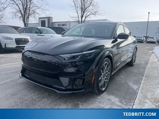 Equipment Group 400A Standard Package, Ford Connectivity Package (One-Time Purchase) (Cellular Connectivity for Audio/Video Streaming), Interior Protection Package (1st & 2nd Row Floor Liners w/o Carpet Mats, Cargo Area Cover, and Cargo Floor Liner), Ford Blue Certified Certified, 10 Speakers, 4-Wheel Disc Brakes, ABS brakes, Adaptive suspension, Air Conditioning, Alloy wheels, AM/FM radio: SiriusXM with 360L, Apple CarPlay/Android Auto, Auto High-beam Headlights, Auto-dimming Rear-View mirror, Automatic temperature control, Brake assist, Bumpers: body-color, Compass, Cruise Control / Speed control, Delay-off headlights, Driver door bin, Driver vanity mirror, Dual front impact airbags, Dual front side impact airbags, Electronic Stability Control, Emergency communication system: 911 Assist, Exterior Parking Camera Rear, Four wheel independent suspension, Front anti-roll bar, Front Bucket Seats, Front Center Armrest, Front dual zone A/C, Front reading lights, Fully automatic headlights, Garage door transmitter, Heated door mirrors, Heated front seats, Heated Perforated ActiveX Performance Seats, Heated steering wheel, Hood & Decklid Stripe/Door Graphics Delete, Illuminated entry, Internet access capable: FordPass Connect, Knee airbag, Low tire pressure warning, Memory seat, Mobile Power Cord (120V/240V), Mustang Mach-E GT Performance Upgrade, Navigation system: Connected Navigation, Occupant sensing airbag, Outside temperature display, Overhead airbag, Overhead console, Panic alarm, Panoramic Fixed-Glass Roof, Passenger door bin, Passenger vanity mirror, Power door mirrors, Power driver seat, Power Liftgate, Power passenger seat, Power steering, Power windows, Radio data system, Radio: B&O Sound System by Bang & Olufsen, Rain sensing wipers, Rear anti-roll bar, Rear seat center armrest, Rear side impact airbag, Rear window defroster, Rear window wiper, Remote keyless entry, Security System, SiriusXM w/360L, Speed-sensing steering, Speed-Sensitive Wipers, Split folding rear seat, Spoiler, Steering wheel mounted audio controls, SYNC 4A w/Enhanced Voice Recognition, Telescoping steering wheel, Tilt steering wheel, Traction control, Trip computer, Turn signal indicator mirrors, Variably intermittent wipers, Wheels: 20 Machined Face Aluminum, and Wheels: 20 Monochromatic High Gloss Black-Painted